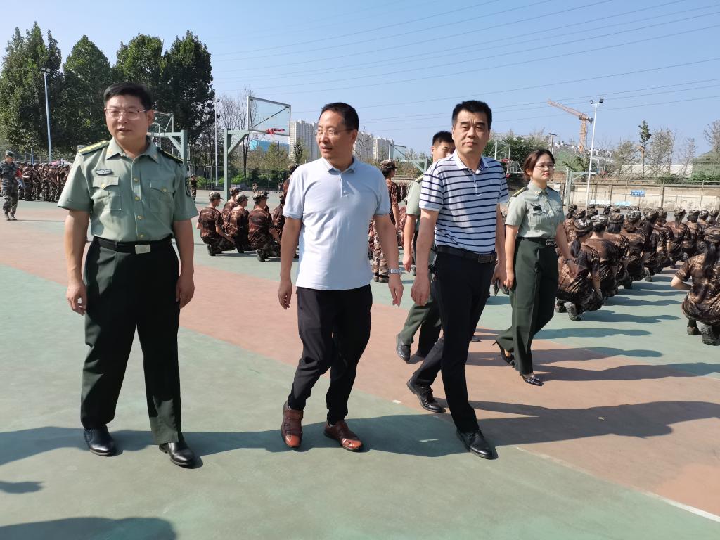 党委书记费沂涛、院长秦洪武、党委副书记王作茂,辅导员张晓、王伟、王仁杰来到军训场地,慰问军训教官及新生。