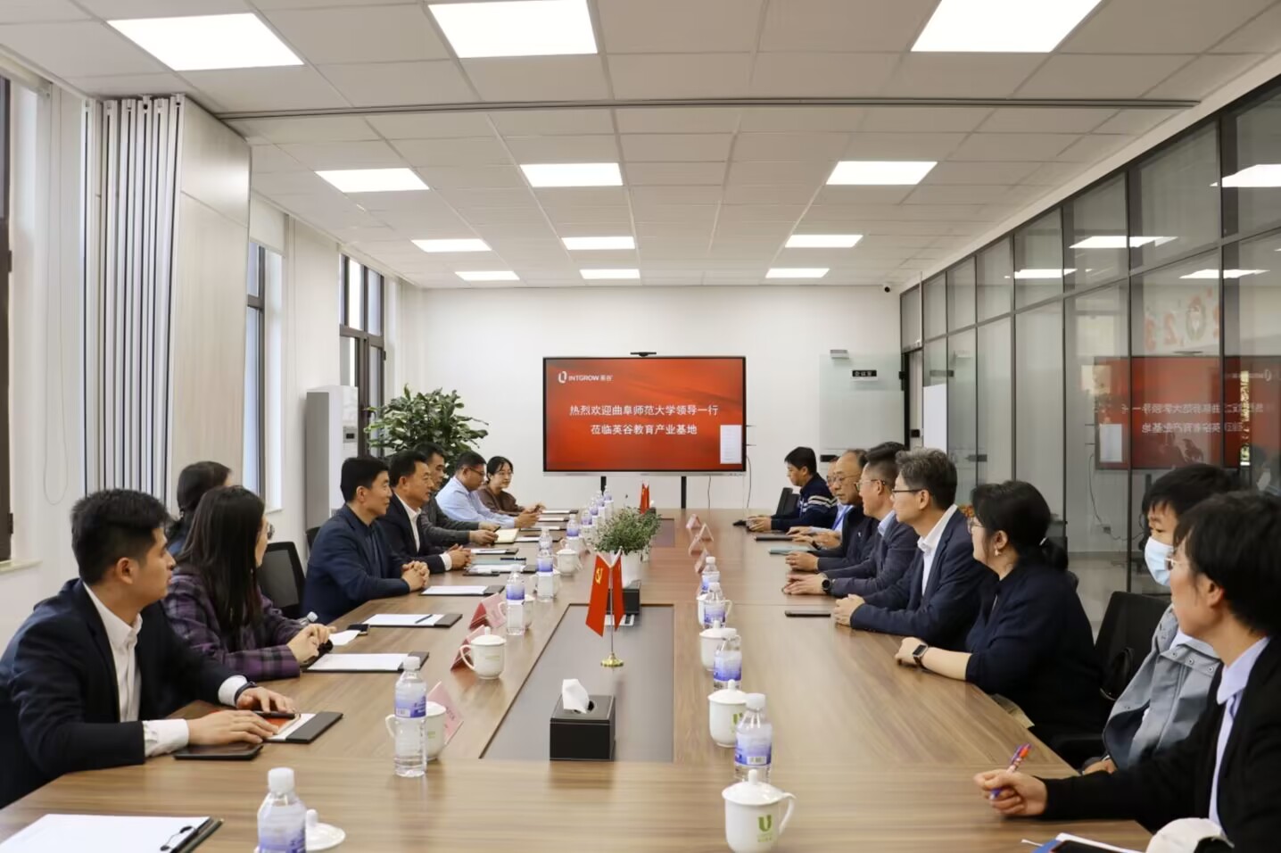 为深入推进校企合作,畅通人才培养渠道,促进学生高素质发展与高质量就业,5月7日下午,黑料社 党委常委、副校长纪洪涛,黑料社 党委书记费沂涛、院长秦洪武、党委副书记王作茂、学科建设办主任孔蕾、辅导员王仁杰等走访青岛英谷教育科技股份有限公司。