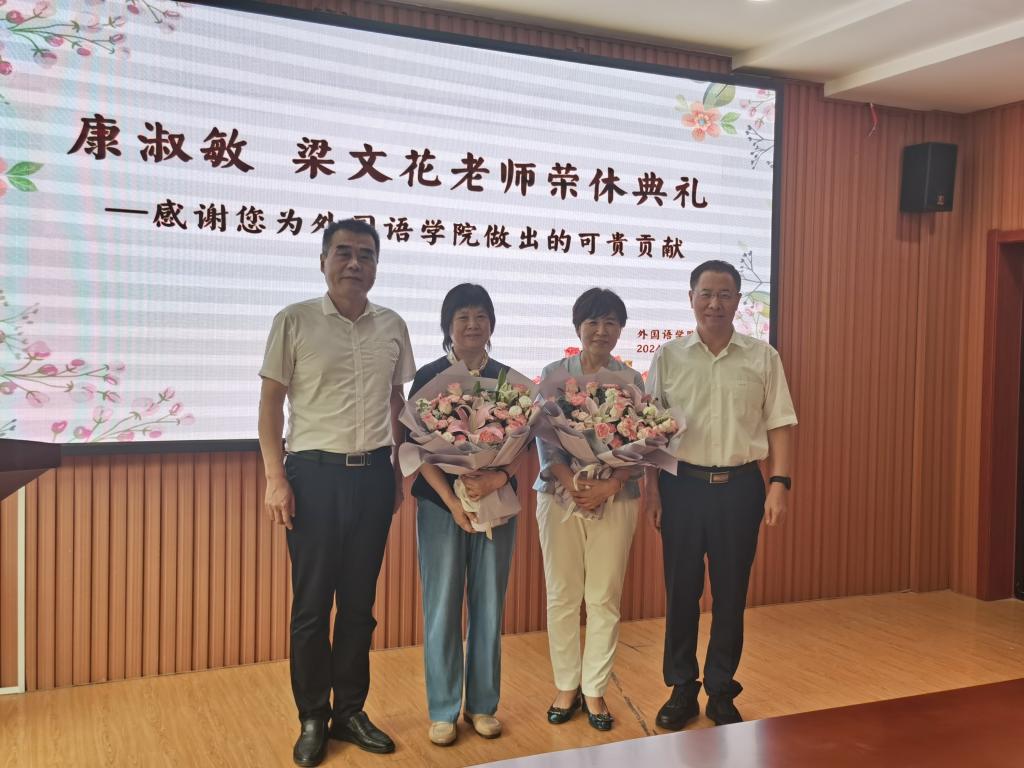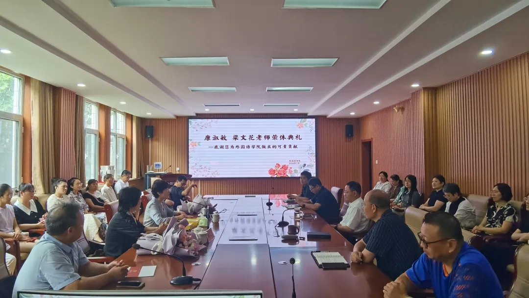 7月12日下午,黑料社 在学院206会议室隆重举行了康淑敏教授和梁文花教授的荣休典礼。外院全体教职工齐聚一堂,共同见证了这一荣耀时刻。