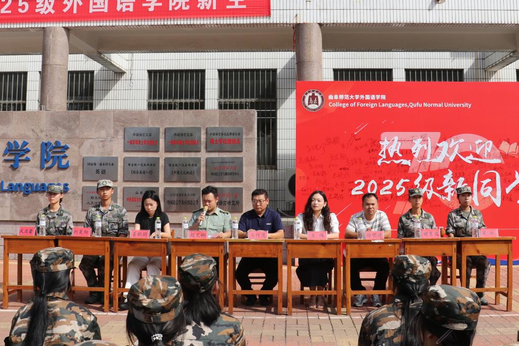 大会在庄严的国歌声中正式开始。党委副书记王作茂首先作动员讲话,强调了大学生参加军事训练的重要意义,鼓励同学们把握锻炼机会,培养艰苦奋斗的作风,增强国防意识,努力成长为德智体美劳全面发展的时代新人。随后,团委书记赵文彬宣布了各连队连长分配名单,明确了各连长的职责与任务。2025级本科生辅导员姜歆玥就军训日程安排、注意事项和训练目标等作了具体说明。2025级新生代表刘翼磊同学发言,表达了对军训的期待与决心,以及尽快融入大学生活、努力成长进步的愿望。最后,教官代表刘昊阳、褚育宏、梁冰、武亚蕾分别发言,展示了教官队伍的专业素质,并承诺将以高度负责的态度科学施训、严格管理,全力保障军训任务圆满完成。
