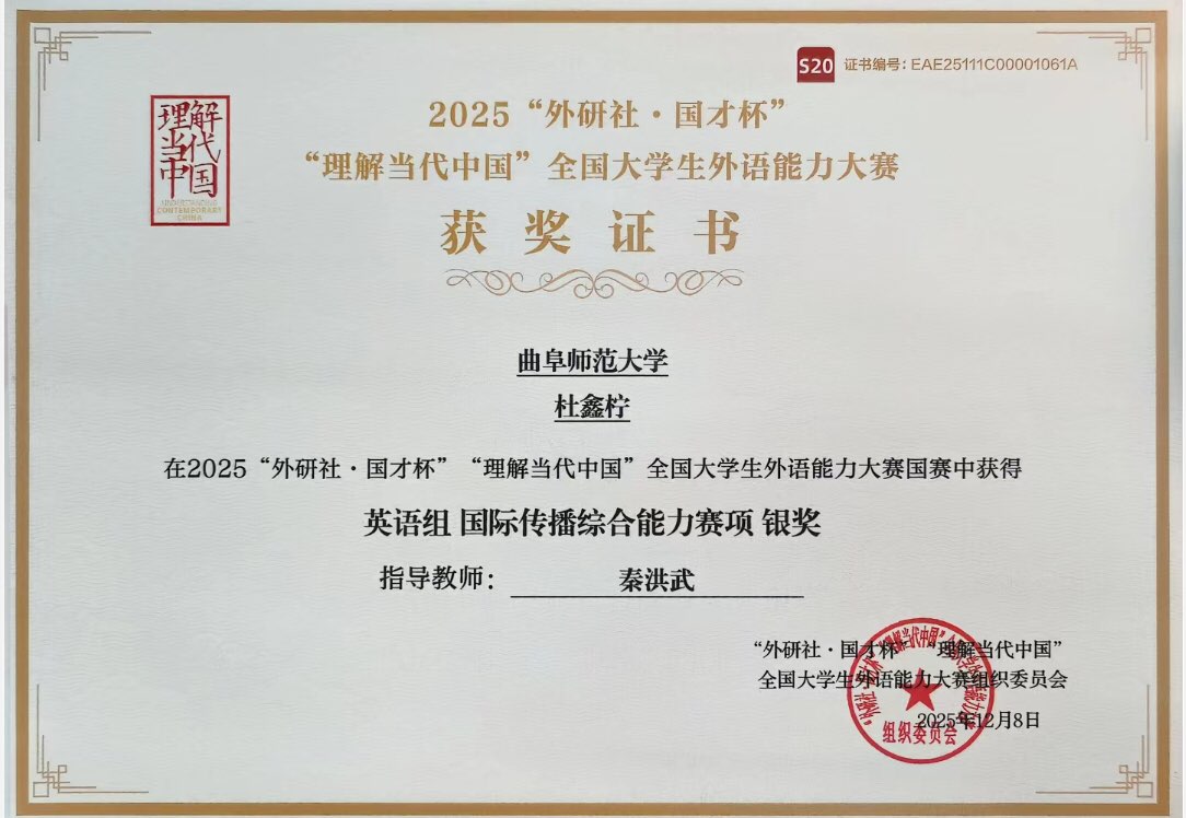 “外研社·国才杯”“理解当代中国”全国大学生外语能力大赛是我国高校外语领域具有广泛影响力的权威赛事,此次比赛共设英语组、多语种组和国际中文三大组别,吸引了来自全国高校的4000余名选手同台竞技。“理解中国,沟通世界”这一主题,展现了中国式现代化的生动实践,拓展了开阔包容的全球化视野。这份亮眼成绩不仅彰显了黑料社