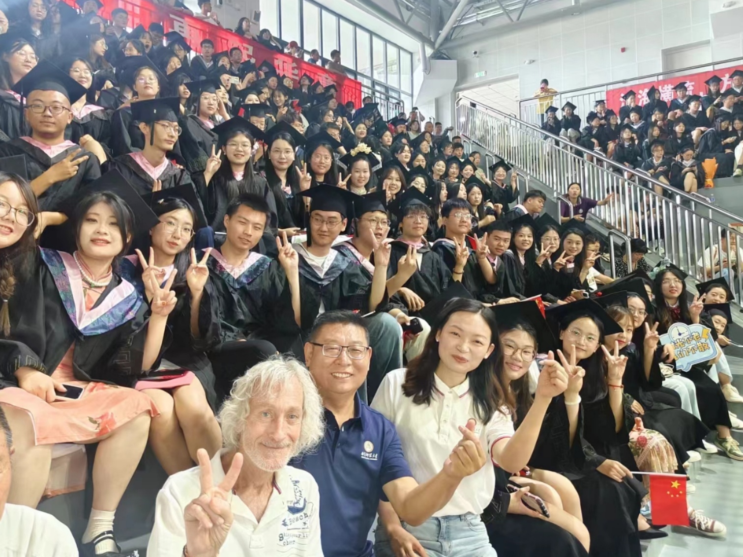 党委副书记王作茂、研究生毕业班辅导员李宝麒、本科生毕业班辅导员王伟,在歌声中与同学们挥手告别,期待未来再次相聚。