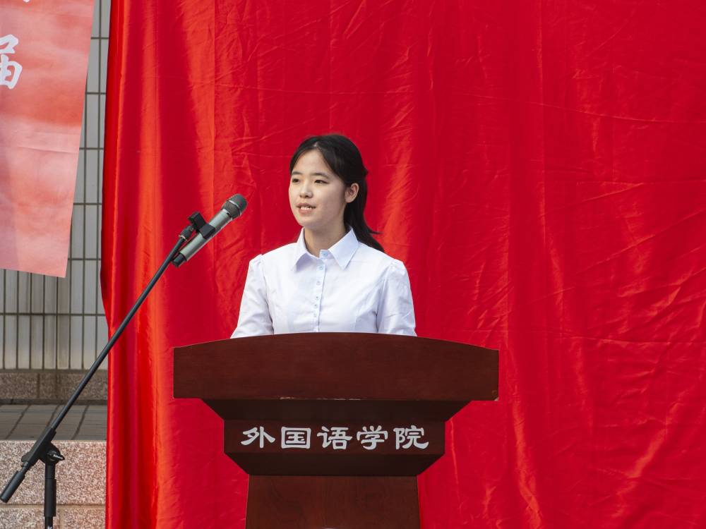 在接下来的环节中,2023级学生代表陈明琪发表了感言,分享了自己在外语学习中的心得体会和成长经历。2024级学生代表王欣哲则向全体同学发出了争做文明班级的倡议,呼吁大家严格要求,争做文明班级,珍惜机会,展现自我风采。此外,新聘任的班主任代表裴珊珊老师代表班主任进行了发言,表达了对同学们的关心和支持,并鼓励大家在活动中勇于挑战自我、实现自我提升。