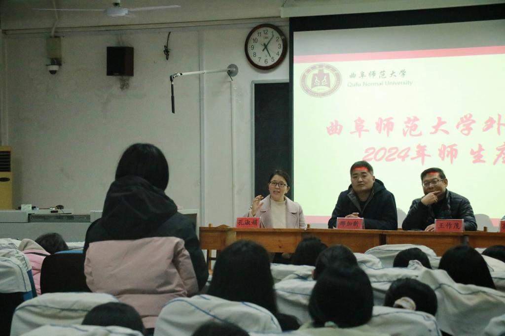 于12月4日在系楼301举办了2024年度师生座谈会,学院党委副书记王作茂,副院长邢加新,学院教师孔艳艳、孔淑娟,研究生辅导员李宝麒,2024级本科生辅导员王伟参加了座谈会。