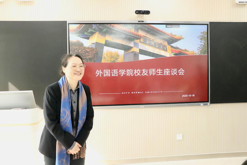 会议伊始,校友王美玲提出了“外语为钥,文化为根,体育为媒”的发展理念,既强调了对外沟通的工具,也兼顾了内在与外在发展的根本。随后在交流会的互动环节中,她与学生代表进行了面对面交流,耐心地解答了同学们关于专业学习、职业规划以及国际发展方向的各类疑问。最后校友王美玲勉励师弟师妹们扎根曲园沃土,夯实外语基础,厚植文化自信,以青春的激情拥抱世界,将个人成长融入国家发展大局。