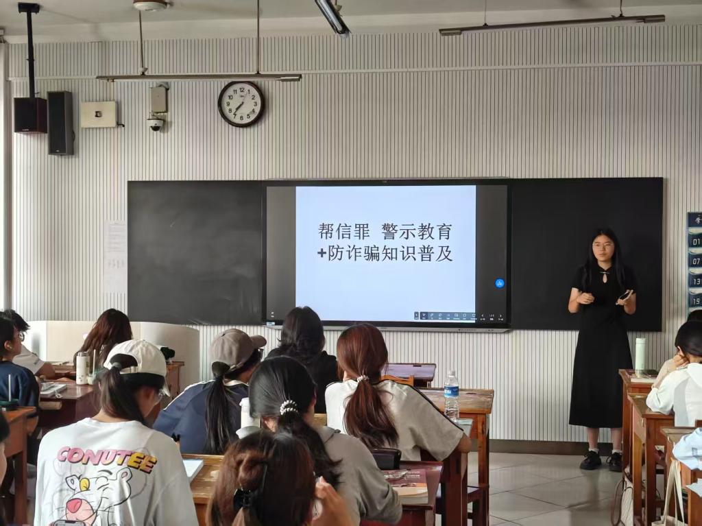 首先,班会以大学生遇到诈骗的原因和校园诈骗的类型为出发点,重点介绍电信网络诈骗的典型方式。随后,各班级从电信诈骗的实例出发,详细介绍各类电信诈骗的常见作案手法,深入剖析各大常见电信诈骗的底层逻辑,并提出兼具实效性与可行性的自我保护手段及规避方法。最后,各班级强调认识分辨电信诈骗的重要性,同时教育同学们应具有分辨电信诈骗的基本能力,掌握关乎个人人身安全和财产安全的反诈知识。