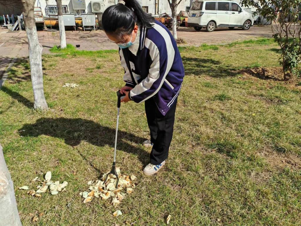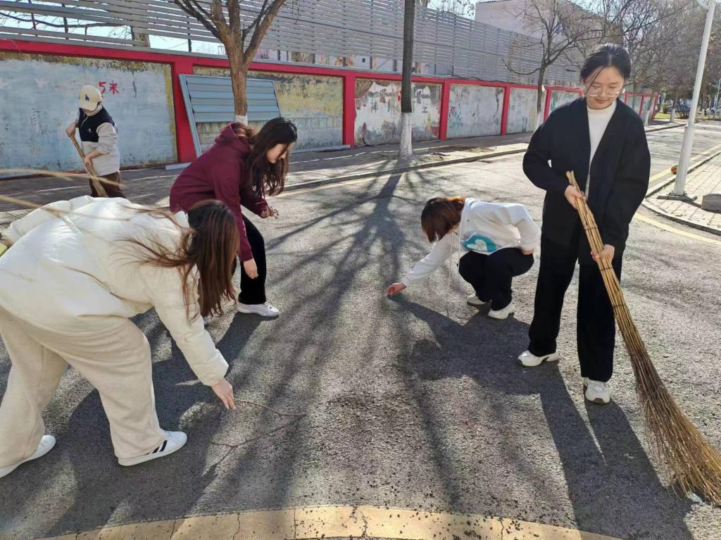 于系楼前举办“传承雷锋精神,共建美好校园”卫生打扫志愿活动。2023级本科生志愿参加此次活动。