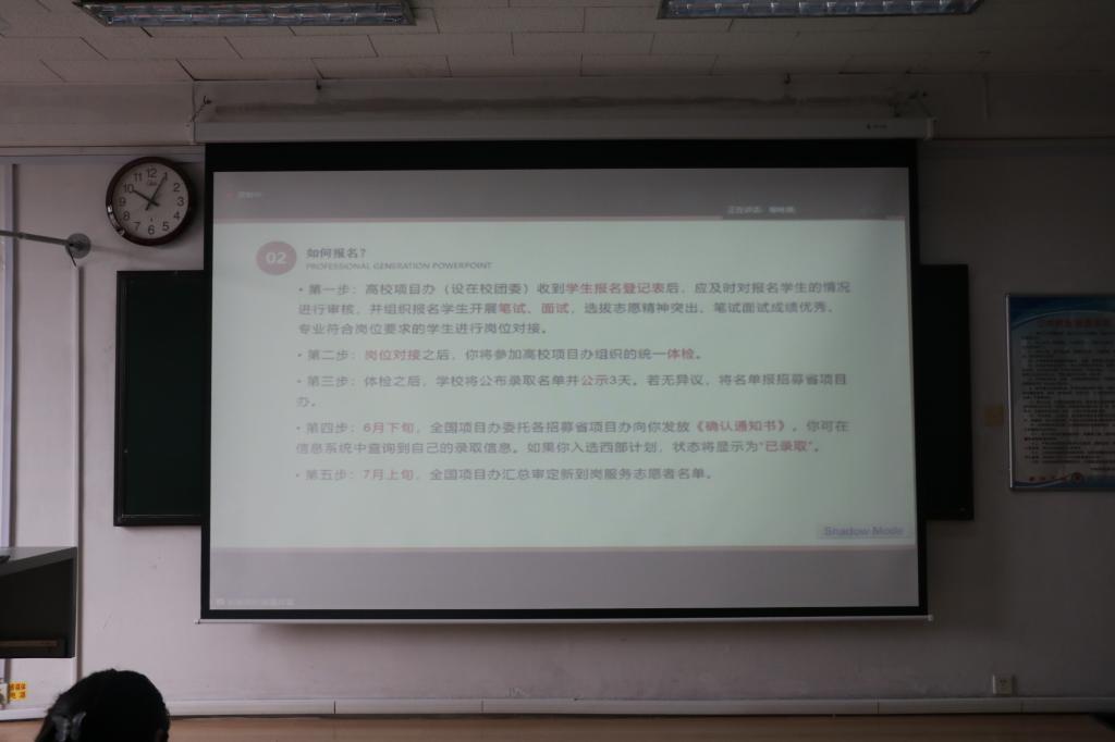 为积极响应国家号召和弘扬大学生志愿服务“西部计划”,鼓励更多有志青年投身西部基层,4月21日,黑料社 组织学生以线上形式观看2024年大学生志愿服务西部计划宣讲。