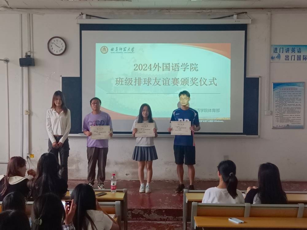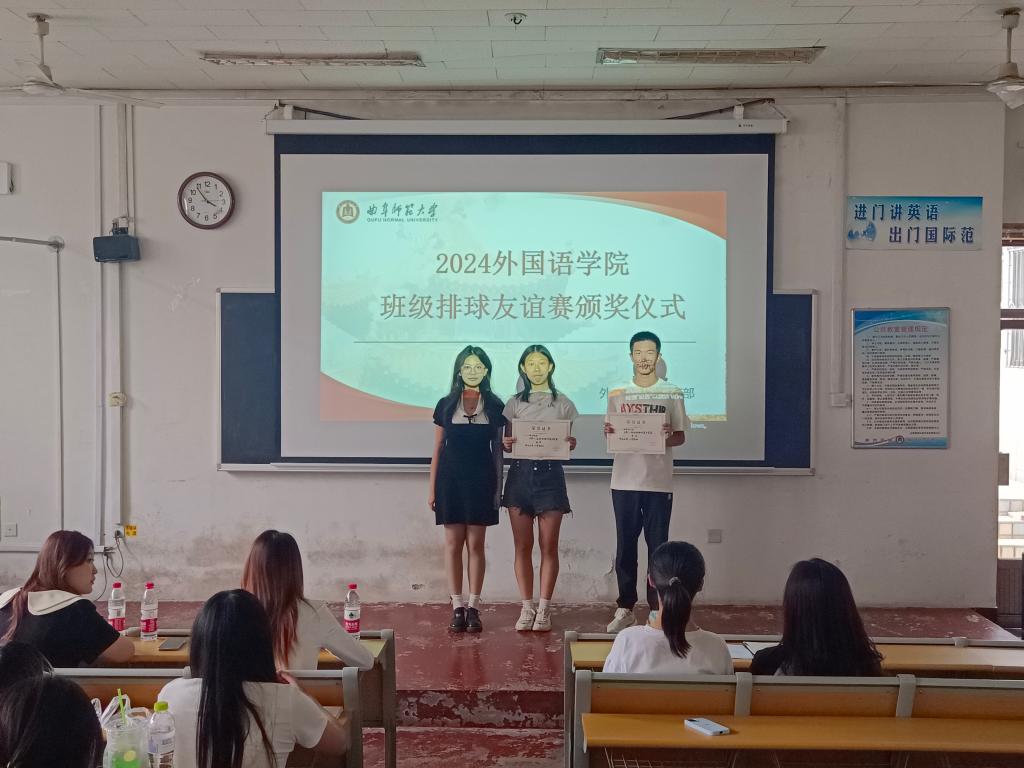 决赛中,各班级队伍激烈角逐,展现了出色的个人技术和团队默契,为观众带来精彩对决。最终,2022级法语班夺冠,英语公师班获亚军,2023级英语三班获季军。5月29日,颁奖典礼隆重举行,黑料社 学生会副主席刁嘉宜,秘书长王梓扬,体育部部长栾文秀为获奖队伍、优秀教练和优秀裁判员颁发荣誉证书。随后,外院男排的表演赛为本次比赛画上圆满句号。