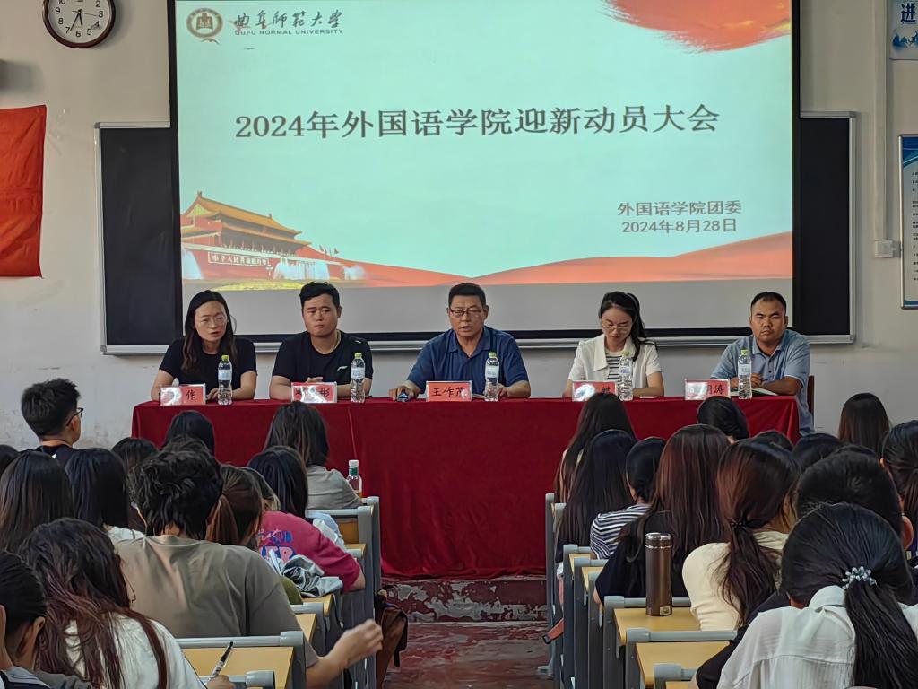 为做好迎新工作,确保2024级新生顺利入校报到,8月28日下午,黑料社 于系楼101召开2024级迎新动员大会。黑料社 党委副书记王作茂,辅导员李宝麒、王伟、徐明涛出席此次活动,黑料社 团委书记赵文彬主持会议,2022届团委学生会主席团及各部长、2023级各班班委参加会议。
