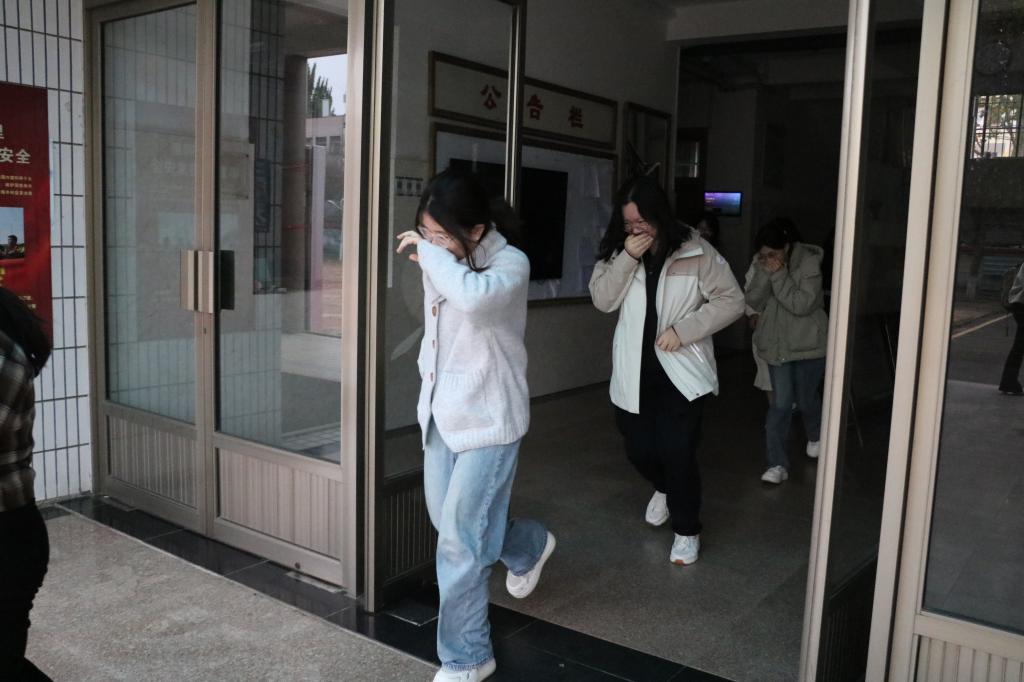 活动伊始,同学们有序来到系楼112教室,模拟起日常课堂场景。在主席张嘉怡发出逃生信号后,同学们迅速反应,纷纷拿起湿毛巾,紧紧捂住口鼻,压低身姿,朝着预定疏散路线快速撤离。在疏散过程中,秩序井然,大家相互配合,没有推搡拥挤,展现出了极高的纪律性和应急素养。在相关人员的指引下,同学们全部安全、迅速地抵达了指定的安全区域。随后,副主席杨子涵开始为同学们进行消防知识宣讲。她详细讲解了火灾预防和应对措施,并结合实际案例让同学们深刻意识到消防安全对于自身、对于校园的重要意义。