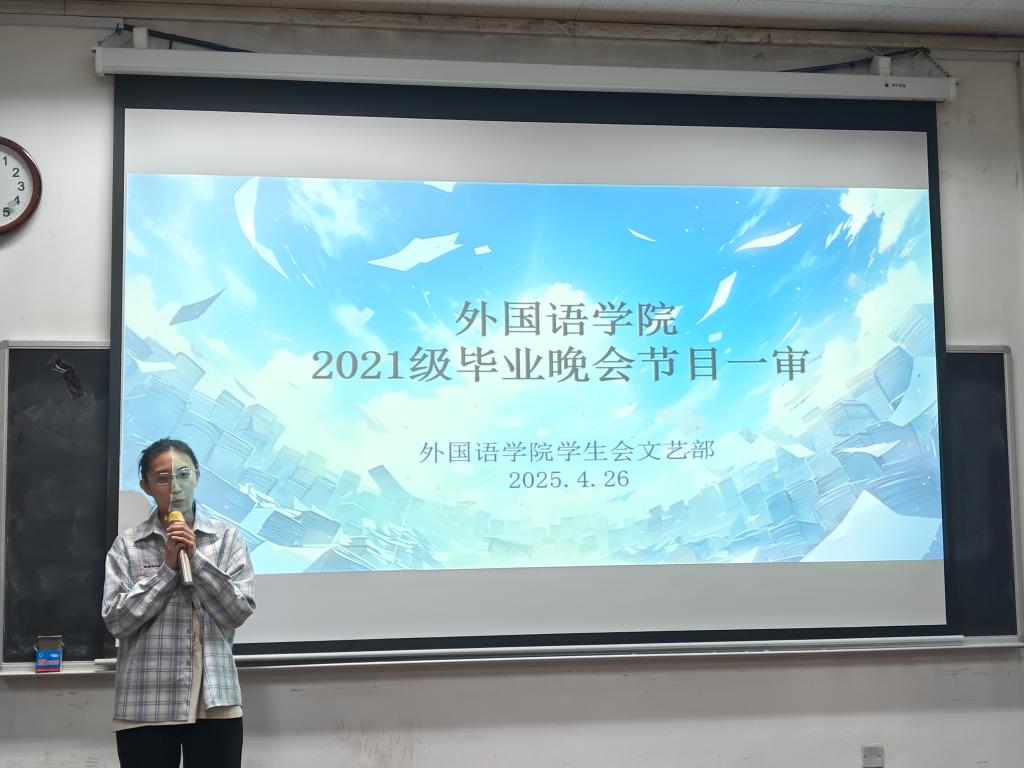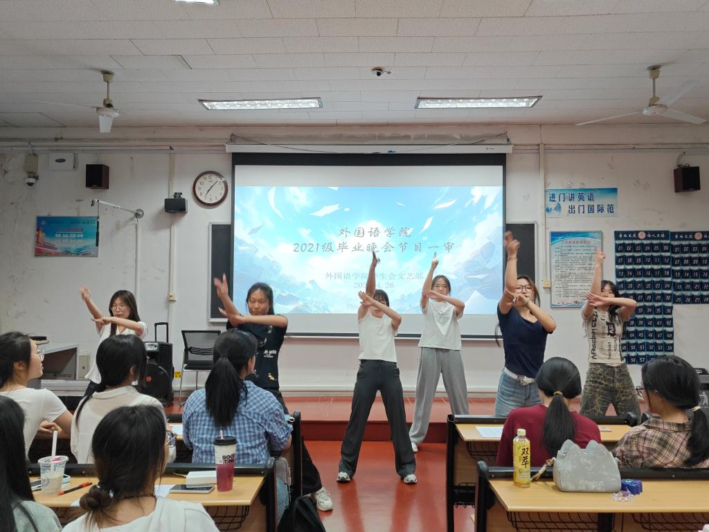 本次一审通过节目将进入后续打磨阶段,学院计划于五月上旬开展二审工作。作为毕业生自主筹备的文艺活动,此次晚会既是对大学生活的温情告别,亦是通过集体创作展现外院学子艺术素养的窗口。期待同学们在更成熟的舞台上,以真挚表演为青春留下动人注脚。