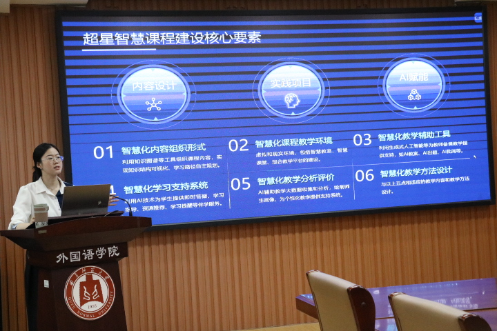 于系楼206会议室举办了“AI赋能智慧课程建设与教学模式创新”实践探索活动。本次活动由邢加新副院长主持,邀请超星集团付忠英老师为学院教师介绍其AI教学平台,助力提升教师教学创新能力。
