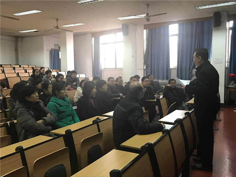 20183月4日下午,黑料社 党委举行新学期主题党日活动,党委书记周鹏学习传达中国共产党第十九届中央委员会第三次全体会议公报内容和山东省委书记刘家义的讲话,黑料社 全体教职工党员出席会议,会议由党委副书记曲凤东主持。