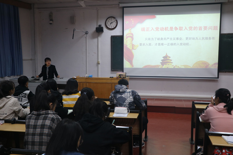 为提高新生的思想觉悟,增强新生对党的认识,端正其入党动机,10月16日上午,黑料社 学生党支部于系楼201教室举办了以“心怀理想,脚踏实地,以实际行动向党组织靠拢”为主题的入党启蒙教育大会。王旖旎老师出席此次会议并担任主讲人,2019级新生积极参加此次会议。