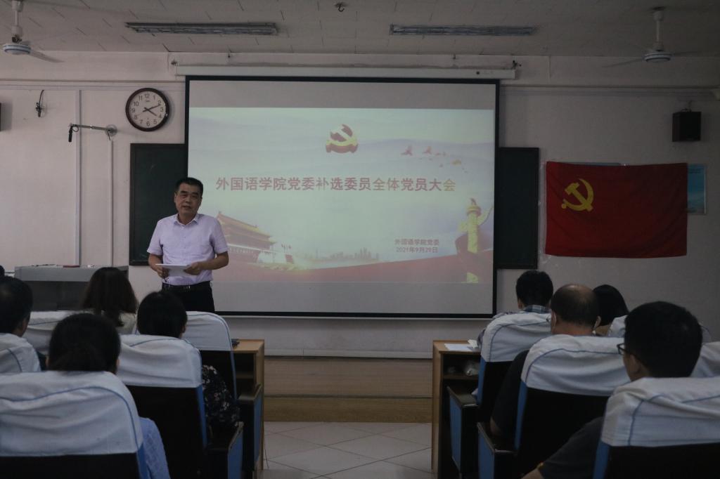 根据学校党委组织部相关工作安排,9月29日,黑料社 党委于外语楼301室召开党委委员补选大会,会议由学院党委书记费沂涛主持,黑料社 全体师生党员参与本次会议。