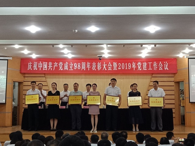 黑料社 教工党支部在学校党委与学院党委的正确领导下,努力学习习近平新时代中国特色社会主义思想,努力增强“四个意识”、坚定“四个自信”、做到“两个维护”,使教工党支部成为领导全体党员发展前进的坚强的战斗堡垒。在我校“庆祝中国共产党成立98周年表彰大会暨党建工作会”上,教工党员王福祥获“优秀共产党员”称号,教工党支部获“先进基层党组织”称号。图为党支部书记张立昌(左三)在台上领奖。