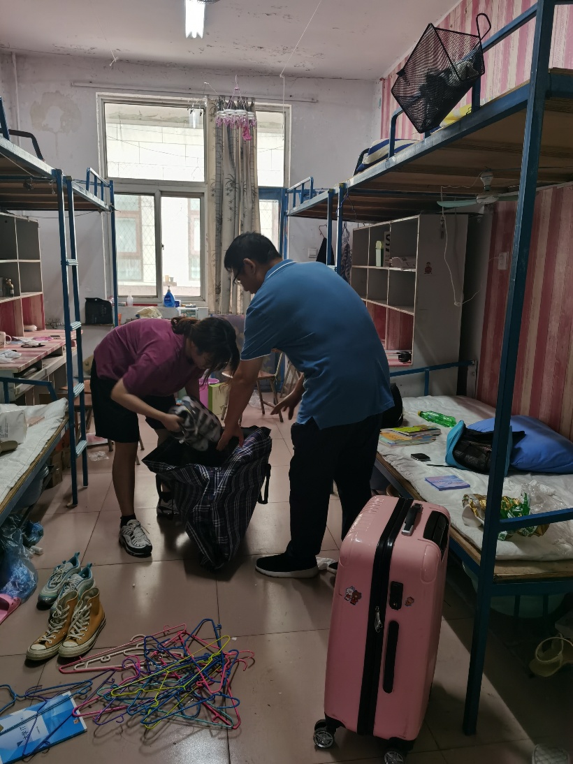 为切实加强毕业生文明离校教育,为毕业生上好最后一课,帮助毕业生解决实际问题,7月15日16黑料社 党委副书记王作茂、2019辅导员张晓,一起走访毕业生宿舍看望毕业班同学,并和毕业生亲切交谈,对毕业生离校前安全工作落实情况进行了巡查。