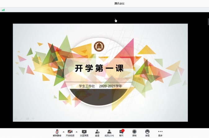 于2020年9月6日下午15时进行《开学第一课》。本学期的《开学第一课》分别由2017级辅导员冀玉珍老师、2018级辅导员王旖旎老师、2019级辅导员张晓老师主讲,学院各年级学生分别聆听了《开学第一课》。
