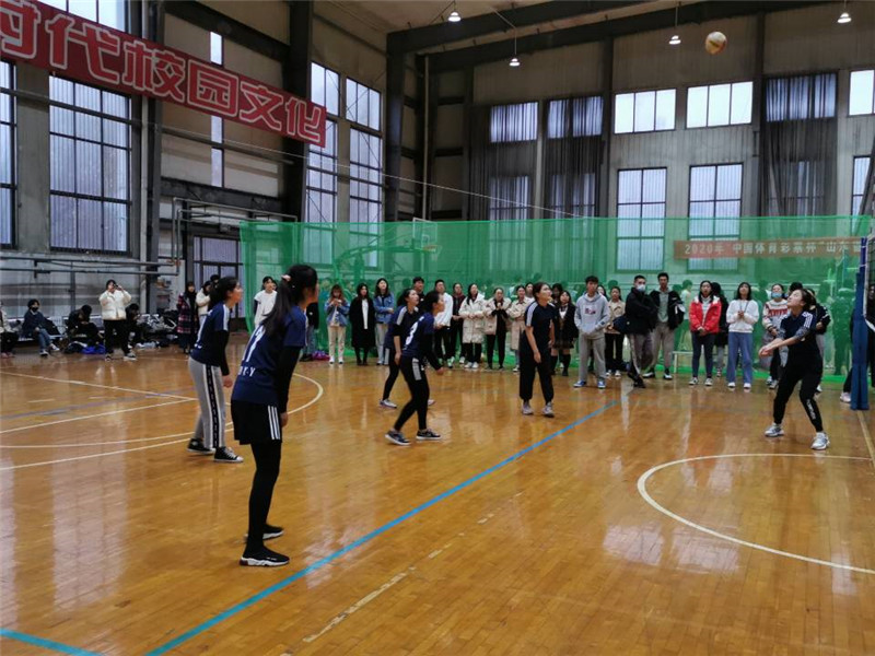 男女排球队参加比赛,分别对阵教育学院和物理工程学院。学院党委副书记王作茂、代理团委书记张晓、18级辅导员赵文彬来到比赛现场对排球队员进行问候加油,并与学生们一同观看排球比赛。
