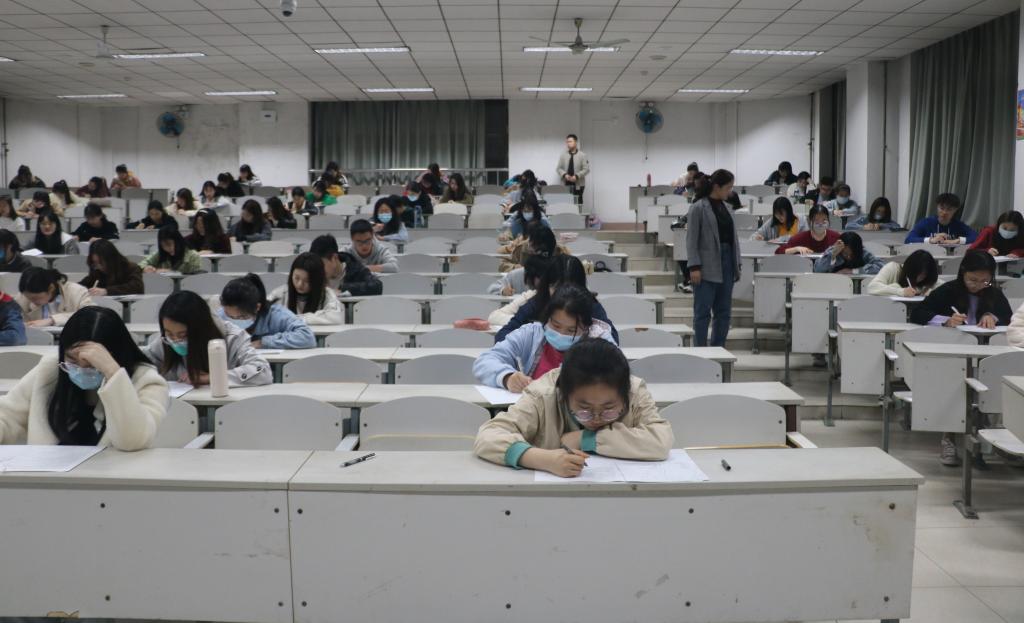 学生党支部书记张晓、2018级辅导员赵文彬、2020级辅导员王伟以及党员刘知林、刘雪莹、杨蓉蓉、郑雯雯监考。部分入党积极分子参加本次竞赛初赛。