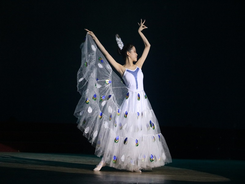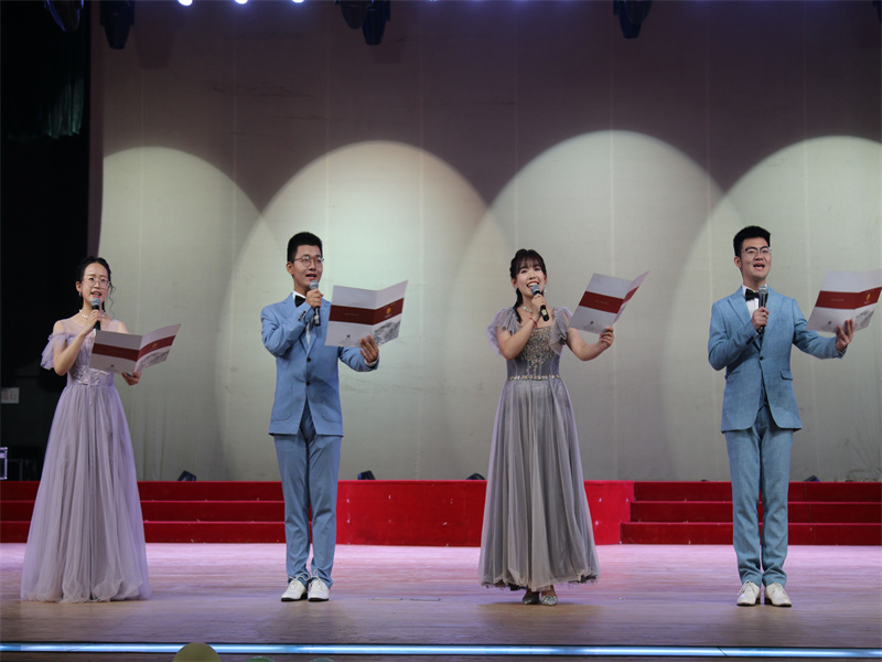 晚会开始前,观众陆续入座,共同观看毕业主题Vlog,追忆往昔风华正茂少年时,聆听今朝谆谆教诲恩师赠。灯光闪烁如星辰,舞姿曼妙恰青春。晚会以舞蹈Yes or Yes开场,火力全开,点燃全场,引来欢呼无数,彰显了外院学子的青春热血,魅力无限。接下来,由高歌老师、孙炜伟老师共同表演的诗朗诵《诗意中国》更是精彩万分,舒缓的音乐中,老师们用声情并茂的朗诵带领我们走入诗情画意,感悟大美中国的万千美好。而后,小品《皇帝考妃》以幽默风趣的舞台表演传递了外院学子对曲园的无限热爱。演员们活灵活现的表现使观众忍俊不禁,拍手叫好,将气氛推向高潮。在之后的歌唱节目中,刘韦妙、郭欣慰以美妙的歌声将观众们带入歌曲《来日方长》的深沉意境中;孙银鸿、袁泉则选择了《破茧》向观众传达音乐的力量与激情。晚会进行过程中,观众们不时通过屏幕向老师、同学和表演者“告白”,表达他们的喜爱与不舍之情。最后,充满张力的舞蹈Queendom以件件甩开的面纱、披风惊艳全场,让观众们几度沸腾,为晚会画上了一个浓墨重彩的句号。