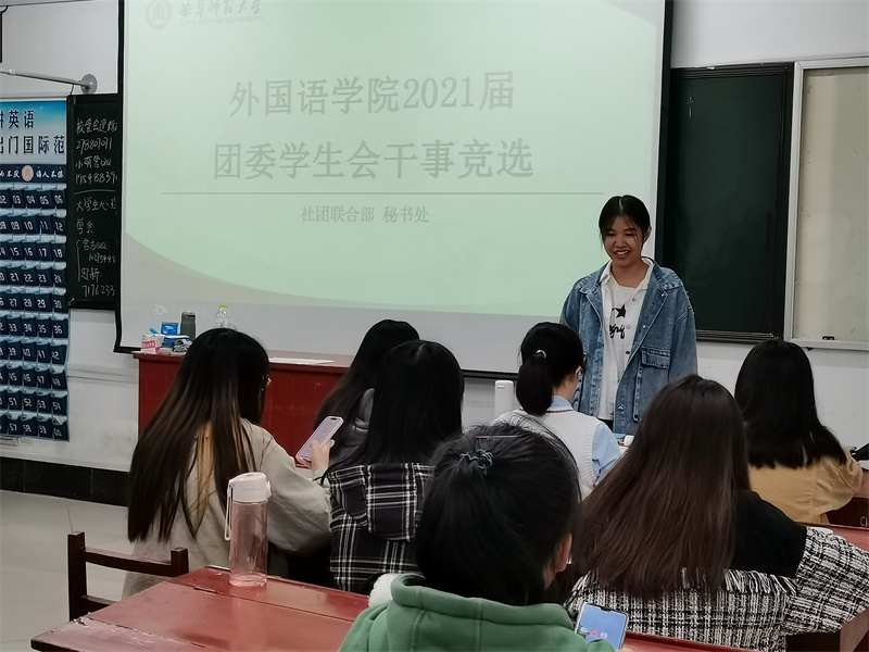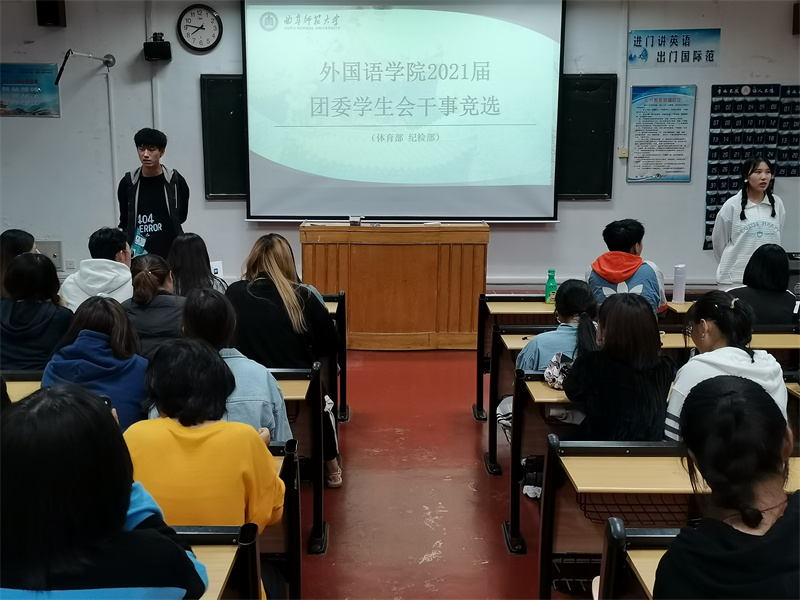 于10月8日完成2021届团委学生会纳新工作。本次纳新工作由主席团及各部门部长负责,2021级新生积极参与竞选。