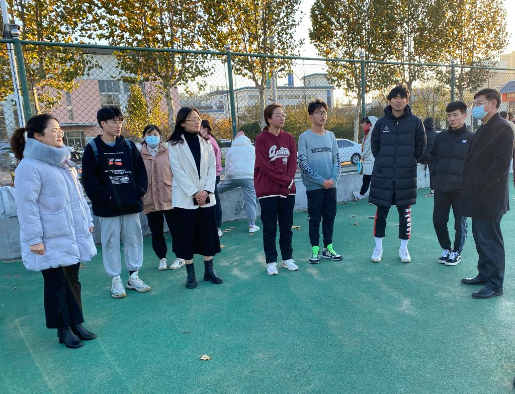 11月8日下午,外国语学院党委副书记王作茂及辅导员老师张晓、赵文彬、王伟、王仁杰前往学校西操场,慰问冬训同学。