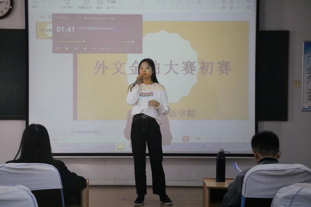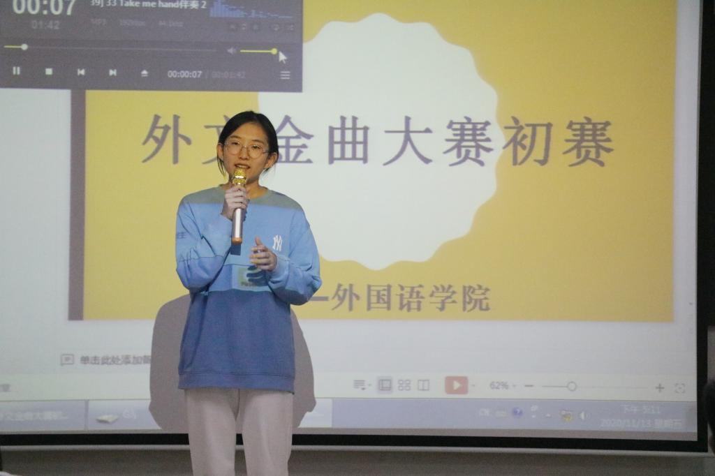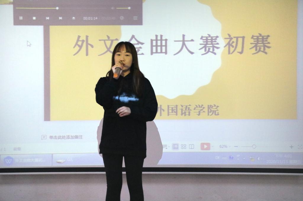于系楼301室举办外文金曲大赛初赛。2020年外文金曲大赛亚军、校大艺术团成员刘韦妙与黑料社