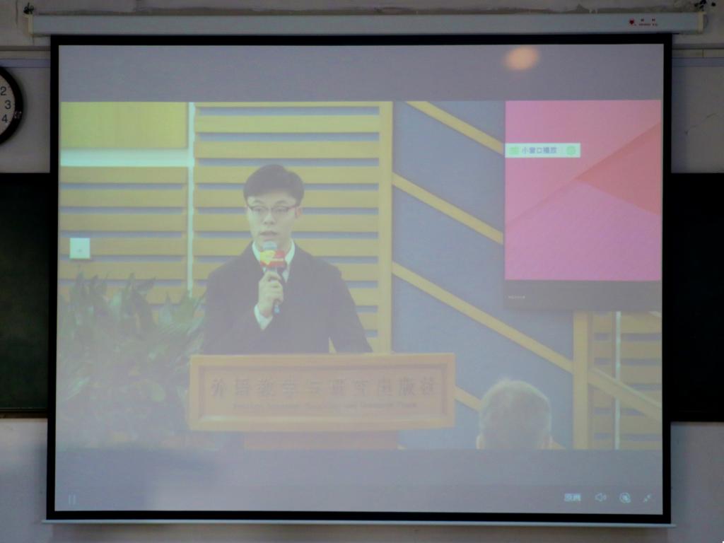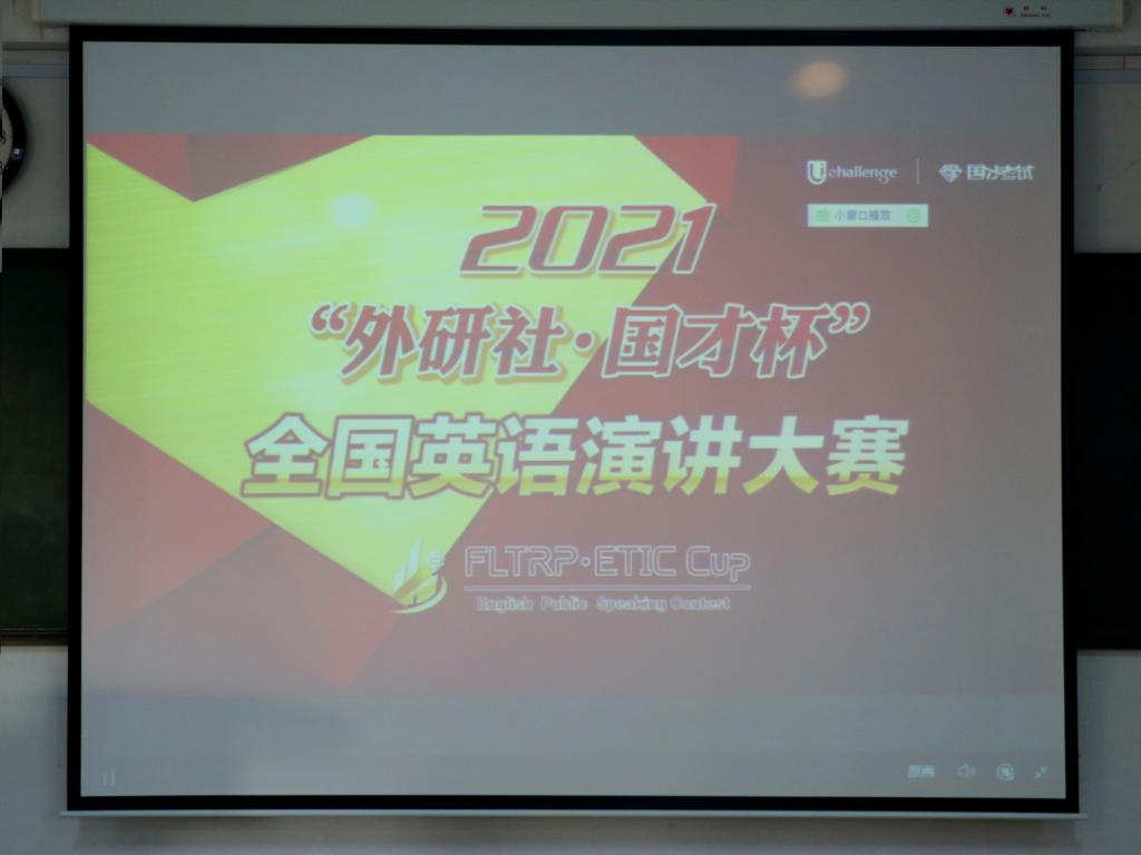 于系楼301室组织2020级、2021级各班学生代表观看2021“外研社·国才杯”全国英语演讲比赛全国决赛的直播。