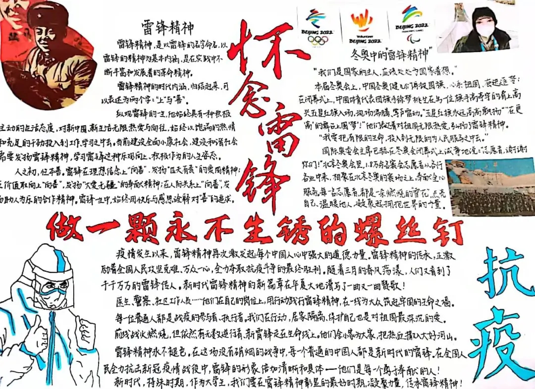 “学习雷锋好榜样,忠于革命忠于党,爱憎分明不忘本,立场坚定斗志强……”通过本次手抄报比赛,同学们更加深刻地理解了雷锋精神,坚定了以实际行动践行雷锋精神的决心。外院学子定会在日后的学习工作中发扬雷锋精神,让雷锋精神在校园中生根发芽。