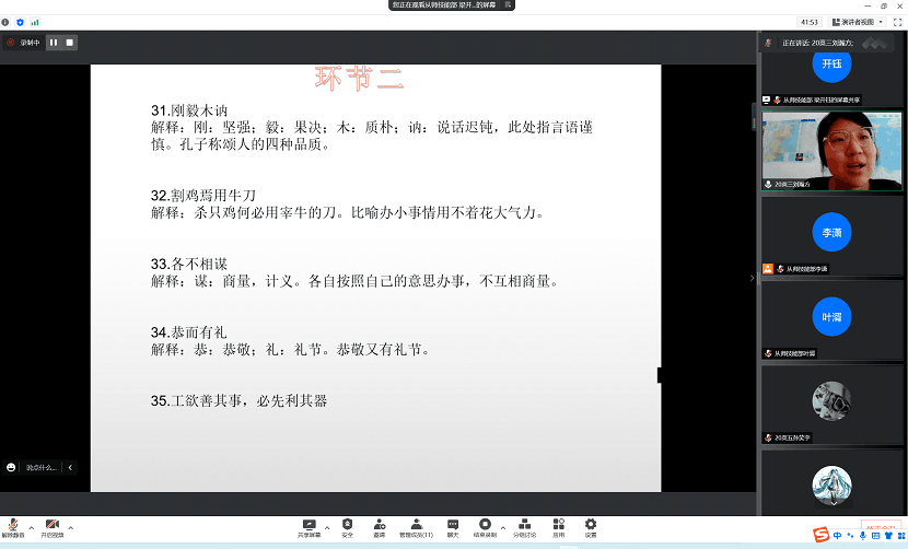 进行线上“学子怀德,沐浴儒风”论语大赛选拔赛。