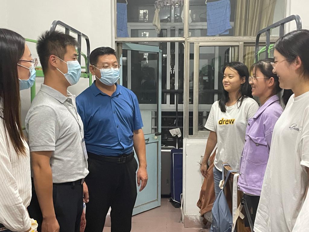新学期已至,为了解新生入校情况及其学习生活需求,进一步做好新生入学教育工作,帮助新生适应大学生活,9月30日,党委书记费沂涛带领学院领导班子、全体辅导员及团委学生会干部代表走访学生宿舍,慰问2022级新生。
