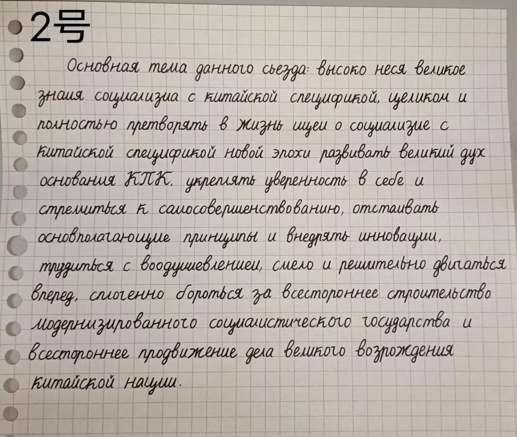 全体学生展开,要求同学们用俄语手写体书写党的二十大报告中的重要内容。选手们回归简单的纸笔书写,让最有力的文字在笔端安静流淌,用心感受党的二十大精神。获奖作品书法功底扎实、卷面工整、字体多样,充分展现了俄语爱好者们的核心素养和综合素质。最终,刘乐嘉、张敬轩获得一等奖,马靖淇、王海宁获得二等奖,纪晓彤、丁泽、罗茹玥、曹一凡获得三等奖。