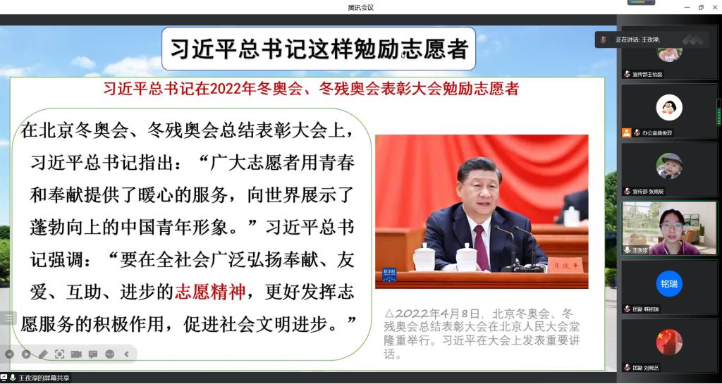 于线上召开“青马工程”第二期培训会议。本次培训由学生会主席王孜淳主持,学生会各部门副部、志愿者、社团主要负责人及2021、2022级各班班长、团支书参加。