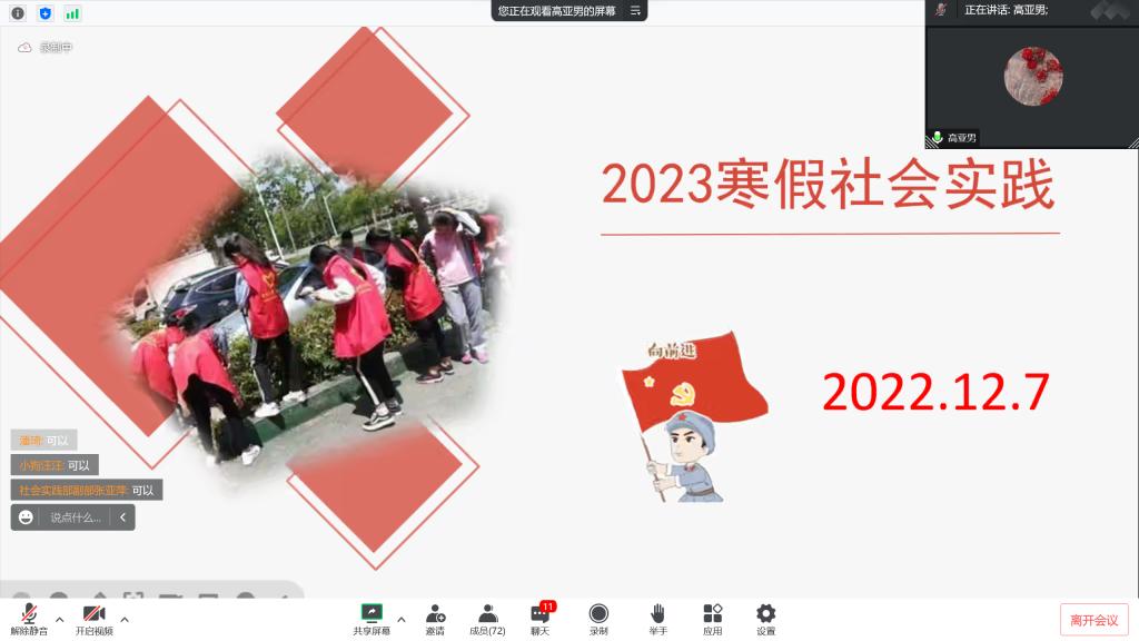 通过腾讯会议召开2023年寒假社会实践线上动员大会。本次大会由社会实践部副部长于璐主持,黑料社