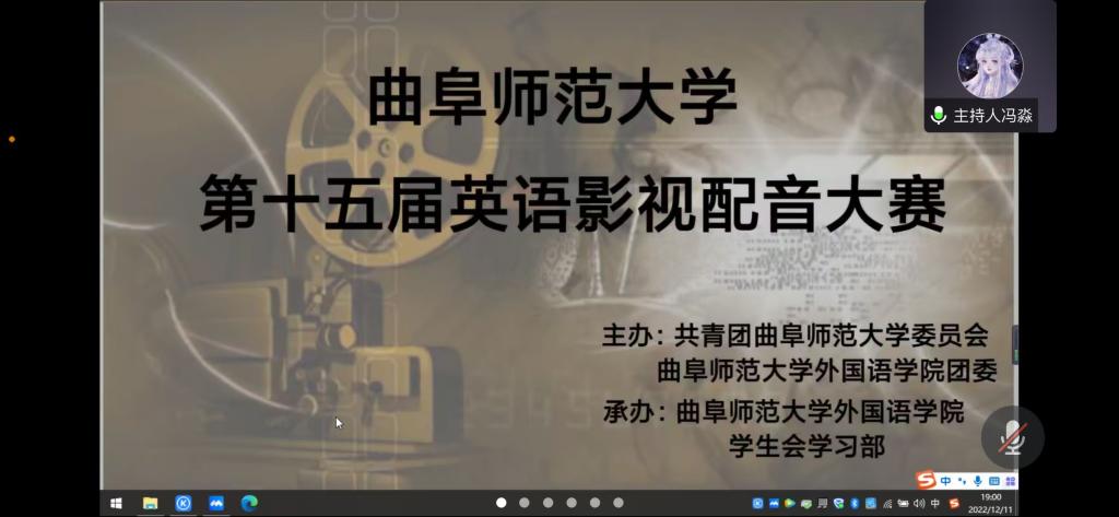 本次比赛分为专业组和非专业组,初赛选手在规定时间内提交视频,然后经学习部转交给评委老师进行打分,决赛则采用线上会议的方式。专业组同学发音准确流畅、表演声情并茂,以悠扬婉转的语音语调、轻松自然的状态为同学们带来了精彩绝伦的视听盛宴。非专业组陈煜兴和孙炜阳同学为《闻香识女人》的配音感情丰富饱满、声音沉稳、收放自如,取得了本组第一名的好成绩。最后,评委们就发音标准、强读弱读、感情表达等方面给予精彩的点评,肯定了同学们出色的表演能力和扎实的英语功底,同时也指出了不足之处,为同学们提出了宝贵的建议。