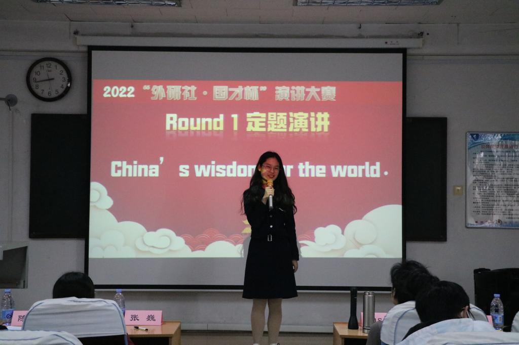 本次比赛采取晋级制。晋级标准为选手累积得分,由八位评委现场打分,最终取前两位晋级山东省复赛。比赛分为定题演讲及问答、即兴演讲及问答和图片描述三个环节。在定题演讲及问答环节,选手以China's Wisdom for the World为主题,定题演讲3分钟,回答评委提问1分钟;在即兴演讲及问答环节,选手于候场室内抽题,准备20分钟后,即兴演讲2分钟,回答评委提问1分钟;图片描述环节,选手现场抽取顺序,上场准备1分钟后对图片展开描述,描述时间为2分钟。面对寓意丰富的图片,参赛选手们镇定且自信地从整体到部分、从过去、现在到未来等角度进行描述,赢得了评委老师的一致好评。其中凭借强大的英语素养与良好的思辨能力,翟欣然同学荣获本次比赛特等奖,张炜焱获得一等奖,王孜淳获得二等奖。
