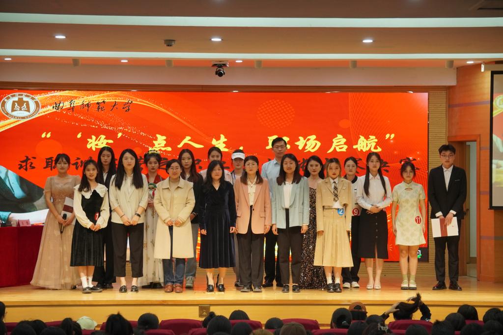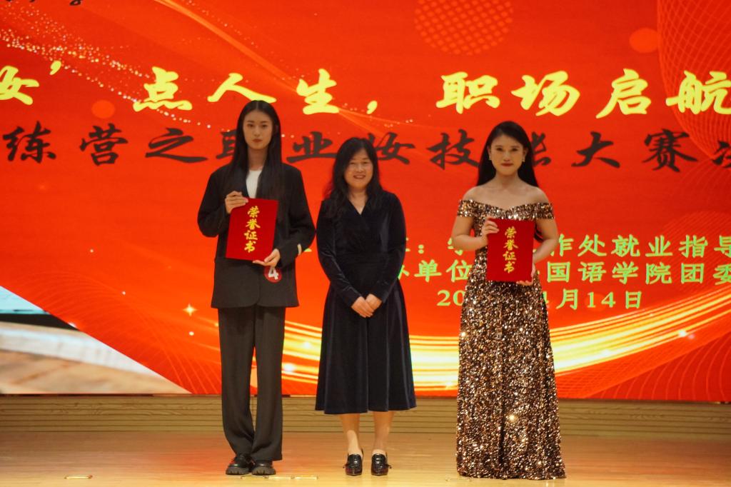 经过初赛的激烈角逐,共有12个学院的12组选手进入决赛。比赛开场,一支舞蹈《纸扇书生》激起了观众的热情。比赛过程分为模特展示、妆容介绍和模拟面试三个环节,各组选手在三个环节均展现出大方得体的妆容形象、沉着冷静的心理素质和较强的随机应变能力。最终,王紫依、周海洋两组选手获得一等奖,闫敏等四组选手获得二等奖,陈颜彬等六组选手获得三等奖。