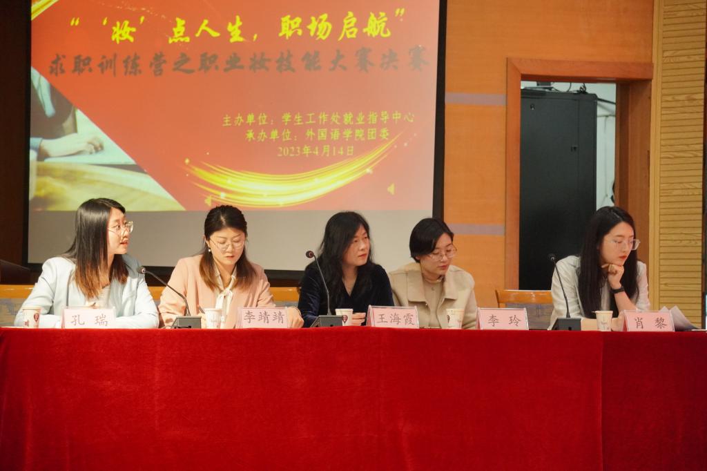 教师王海霞,物理工程学院辅导员李靖靖、孔瑞和文学院辅导员肖黎担任评委。