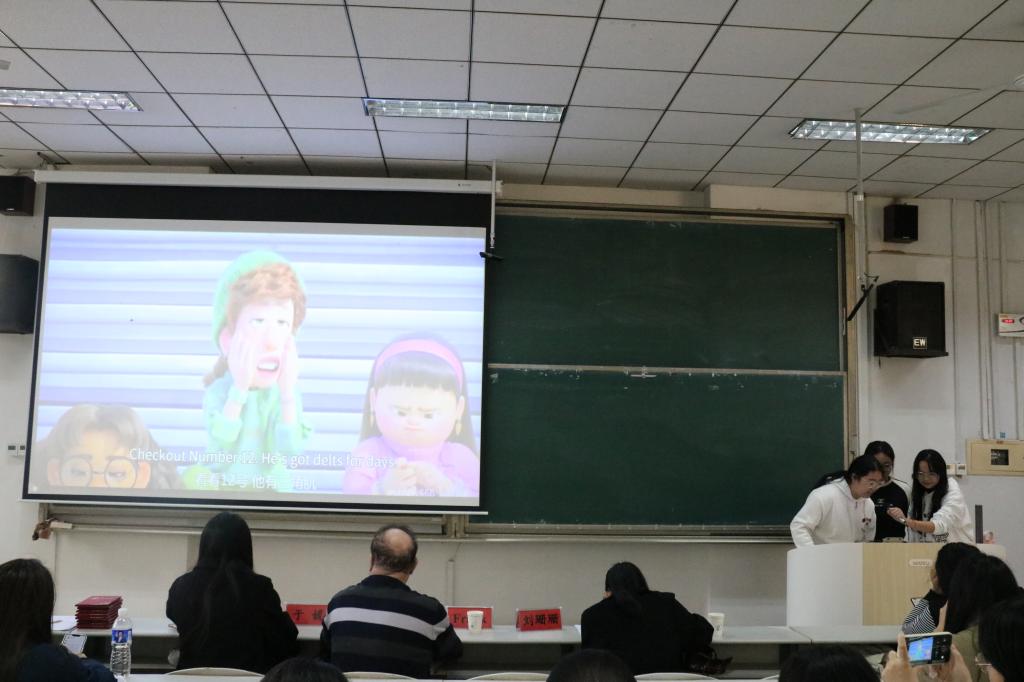 本次比赛分为专业组和非专业组,选手们需自行准备影视视频、进行现场表演,并由评委打分。参赛选手准备的影视片段类型多样,现场气氛热烈。选手们发音标准流畅、情感饱满,且对角色把握准确,将所选影视片段演绎得十分精彩。在决赛中,专业组罗文卓小组对《青春变形计》的配音表演声情并茂,不仅展现出她们深厚的英语语言功底,还彰显了独特的表演魅力,荣获专业组一等奖。非专业组选手李欣怡及其小组成员为《无敌破坏王》的配音生动传神,动人心弦,以卓越的表现为大家献上一场视听盛宴,荣获非专业组一等奖。最后,评委们在情感表达和选材方面给予评价,对参赛选手们的努力和付出表示了肯定,并向她们分享了宝贵的相关知识和经验。