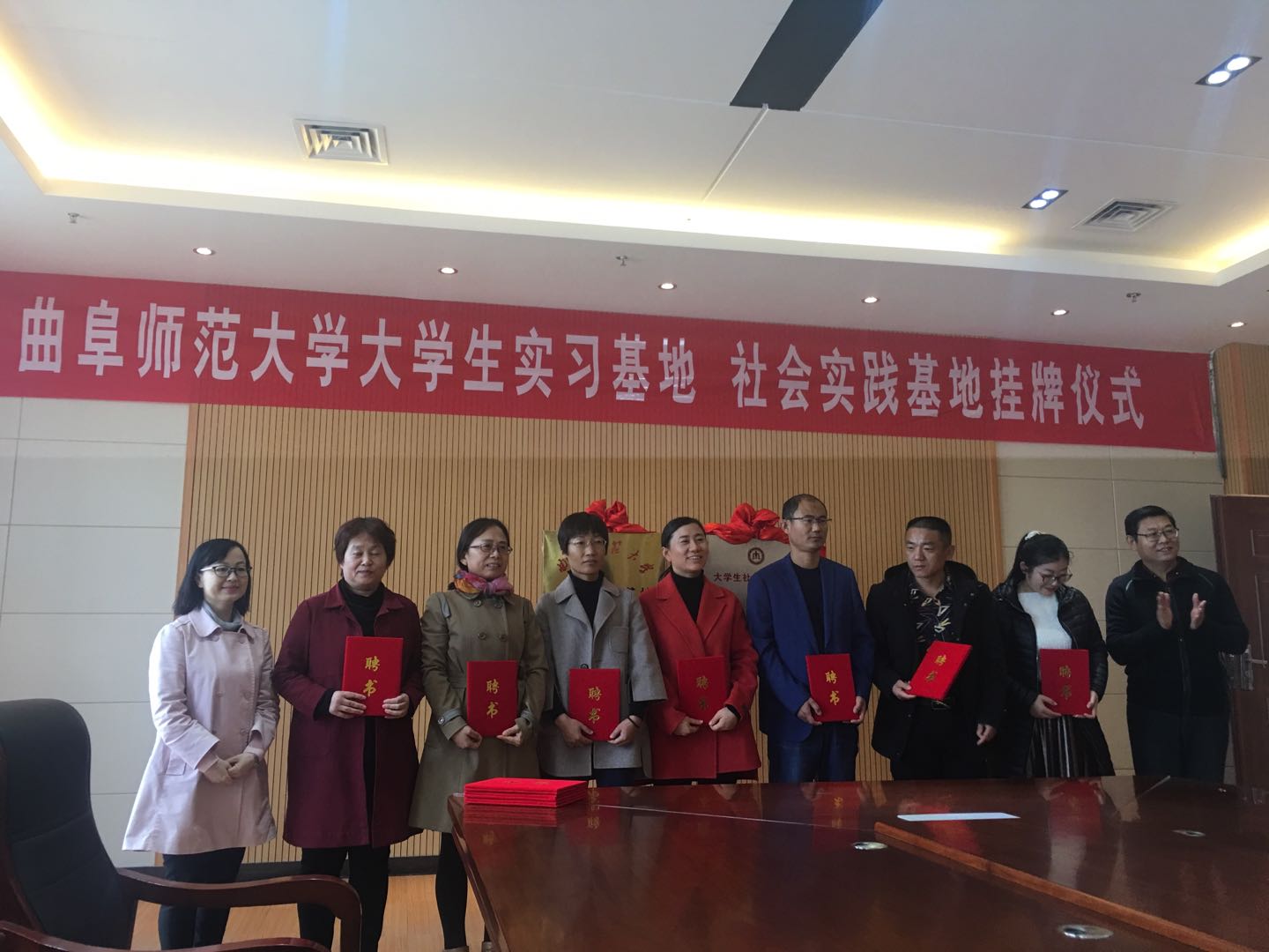 党委副书记王作茂、副院长马蓉为金乡县第一中学、金乡县第二中学的特聘教师发放聘书。聘请金乡县第一中学郝慧娟、田胜利、刘雪梅、仇芬芬、张玉琳(俄),金乡县第二中学殷春香、丁道文、孙春光、尚继占、张福红(俄)等10位老师为大学生实习“指导教师”。