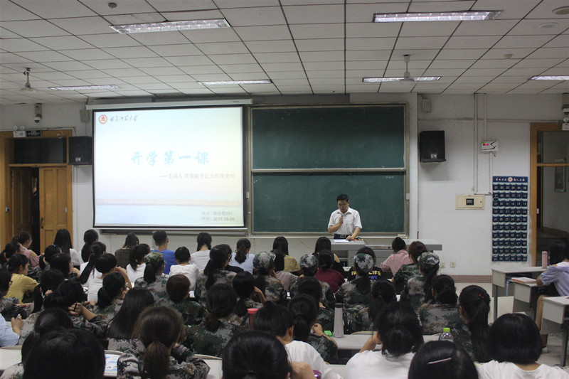 邀请学院党委副书记王作茂为2019级新生讲授“开学第一课”。“开学第一课”为刚刚步入大学校园的新生们带来了大学学习、生活、工作等方面的帮助与指导。“开学第一课”由2019级辅导员张晓主持,2019级全体新生参加。
