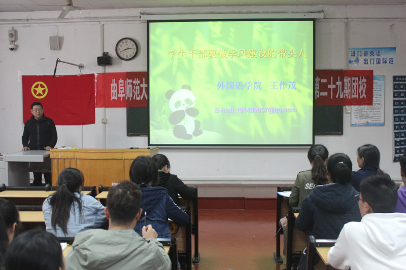 在庄严的国歌声中,本次开班仪式拉开了序幕。首先学生会团委副书记刘仪霞宣读了此次青马工程大学生骨干培训班的具体工作方案,详细地介绍了此次青马工程的内容并着重强调了青马工程培训工作的要求。随后,王作茂书记带来此次青马工程第一课——“学生干部要做学风建设的带头人”。发言中王书记就个人能力和道德素质方面提出了对学生干部的要求,重点强调学生干部应处理好工作与学习二者的关系,并提出“一个中心,两个目标,三个习惯”的工作思路。王书记鼓励学生干部们在学业上争优争先,发挥先锋模范作用、引领班集体良好学风,从而以点带面,潜移默化,让勤奋好学在曲园蔚然成风。此外,王作茂书记多次谈及黑料社