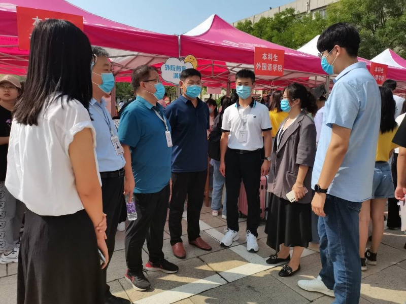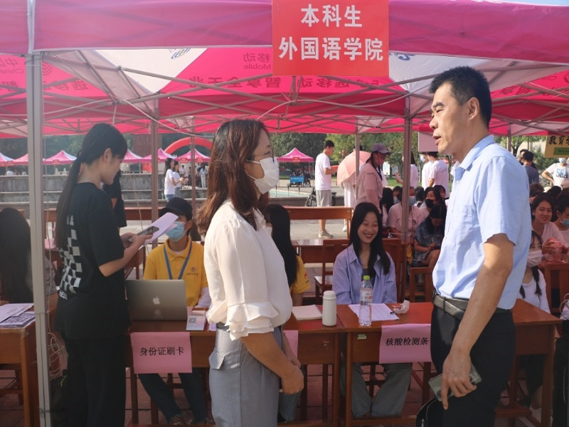 迎新点慰问工作人员并指导迎新工作。