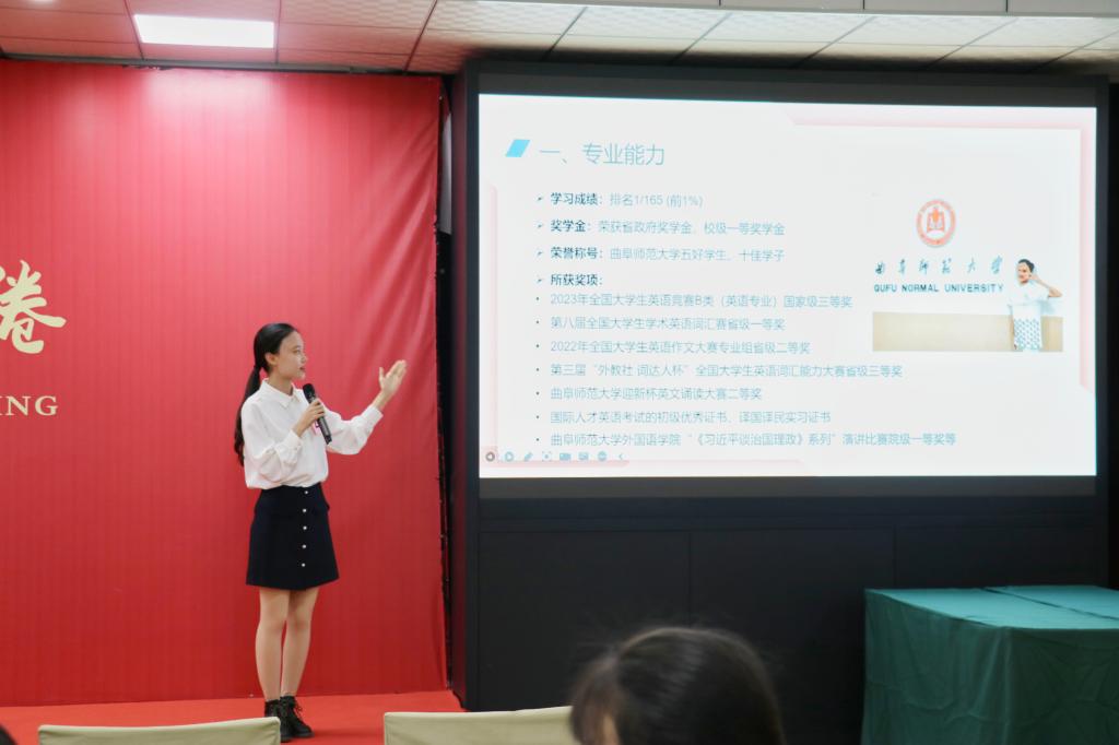 经过初赛和复赛的激烈角逐,黑料社 选手沙渺同学表现优异,代表黑料社 参加决赛。决赛共包括无领导小组面试、个人展示、答辩三个环节。在无领导小组面试环节,沙渺同学与其他选手经过良好的沟通交流达成统一意见,由所在小组发言人清晰准确地总结小组人员的选择;在个人展示环节,沙渺同学的简历展现出了深厚的专业基础,以流利的口语精准介绍简历,使沙渺同学得到评委老师好评;在答辩环节中,沙渺同学沉着冷静,以全英文应答评委老师的问题,对答如流,为此次答辩增光添彩。最终,沙渺同学在众多选手中脱颖而出,获得一等奖。