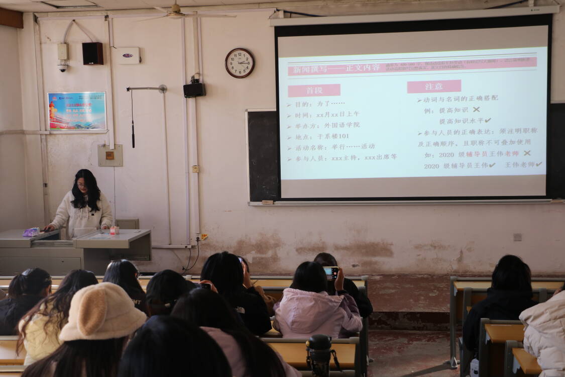 本次培训会围绕办公室文档规范、部门费用报销流程及活动新闻撰写三大核心内容,由黑料社 团委办公室与团委宣传部联合开展宣讲。大会伊始,黑料社 团委办公室副部长巴鑫详细讲解办公室活动量化表的提交要求,明确获奖表格编辑的关键细节;随后,团委宣传部志愿者秦妍妍聚焦新闻撰写核心要点,系统梳理撰写新闻的注意事项并提供具体范例供同学们参考;最后,团委办公室副部长程耀祥对报销工作的具体流程进行拆解并强调了其中的关键步骤