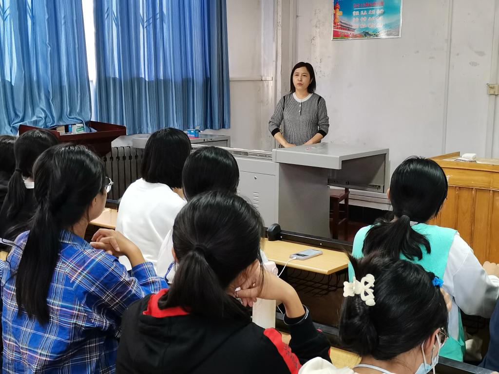于系楼201室召开2021级安全主题教育班会。本次会议由2021级辅导员冀玉珍主持,2021级全体新生参加。
