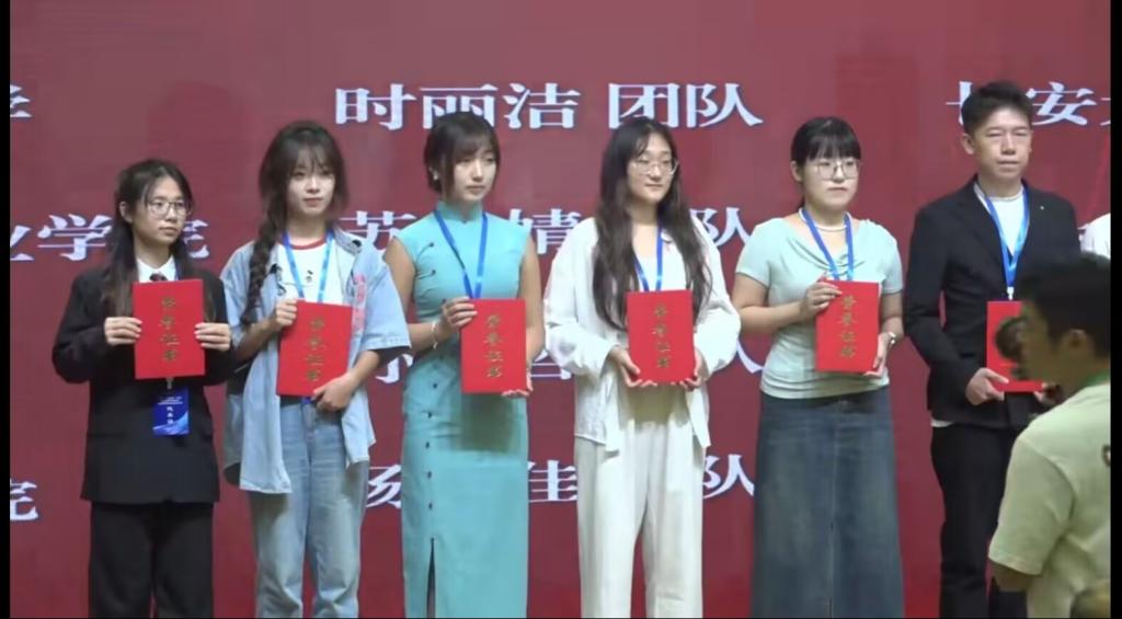 2022级英语师范生时丽洁及其团队成员张立鑫、陈佳悦、董雨琦在吉锡媛和刘萍老师指导下参加了比赛。该团队选择"科创非遗"这一单元,讲述了国家级非物质文化遗产济南皮影戏在科技助力下焕发生机的故事。该短视频荣获山东省特等奖,国家级一等奖。该团队的参赛视频以时间的顺序讲述济南皮影戏的历史,衰落与复兴。整体上,采用由小见大的方式,从济南皮影过渡到皮影这一艺术形式,最后上升到非遗与科技的结合。为了更真实地展示这一传统艺术形式的复兴,该团队还前往济南皮影戏场馆拍摄了一些素材。