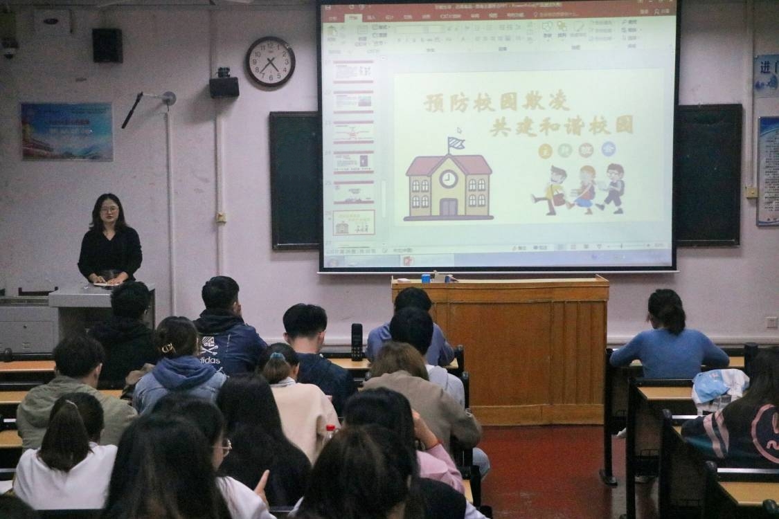 会议伊始,各级辅导员让同学们就平时听到或遇到的校园暴力进行讨论。随后,辅导员进行简单的归纳,向同学们介绍校园暴力的概念并分析校园暴力产生原因。同学们在辅导员的引导下从个人、家庭、学校、社会四个方面对校园暴力进行深入分析,思考校园暴力的危害。最后,辅导员强调,当面对他人攻击时,不要“怕”字当头,我们应尝试用温和理智的态度处理矛盾,有效化解危机,掌握应对校园暴力的正确方法,从而提高防暴能力,学会保护自己。